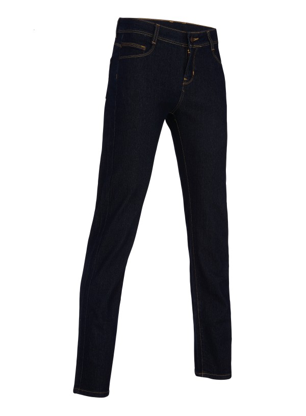 Pantalón de mezclilla stretch para dama, flexible y cómodo, diseñado para uniformes empresariales que requieren resistencia, libertad de movimiento y una imagen profesional con estilo moderno.
